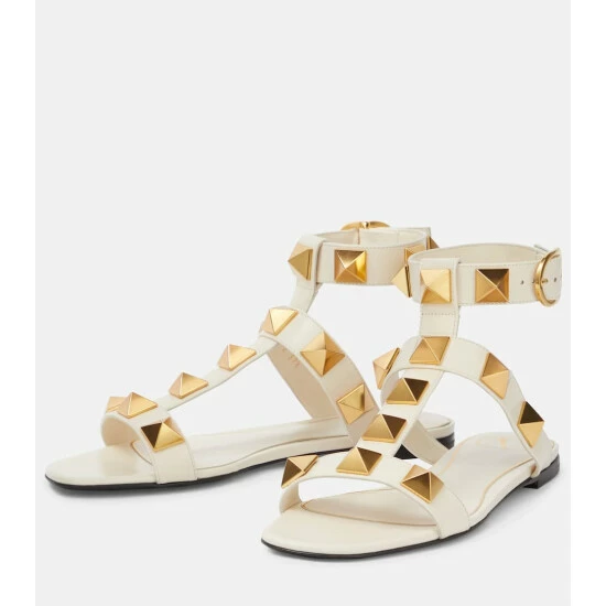 When seeking a statement finish for summer looks, turn to these Roman Stud sandals from Valentino Garavani. This leather pair is elevated with buckled ankle straps and an exaggerated interpretation of the house’s pyramidal studs in opulent metal hardware.