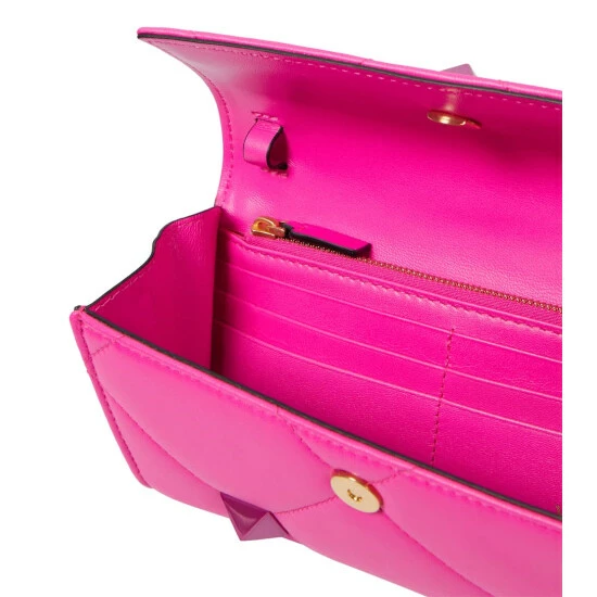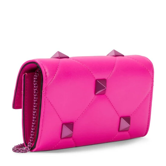 Valentino Garavani’s magnified Roman Stud embellishments continue to evolve since headlining the house’s Resort ‘21 runway show. Here they appear on quilted nappa leather for this shoulder bag, part of the Pink PP collection.