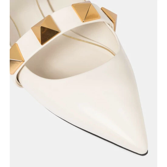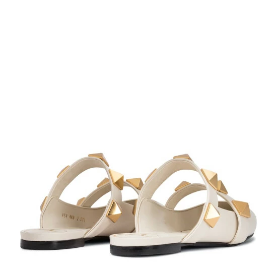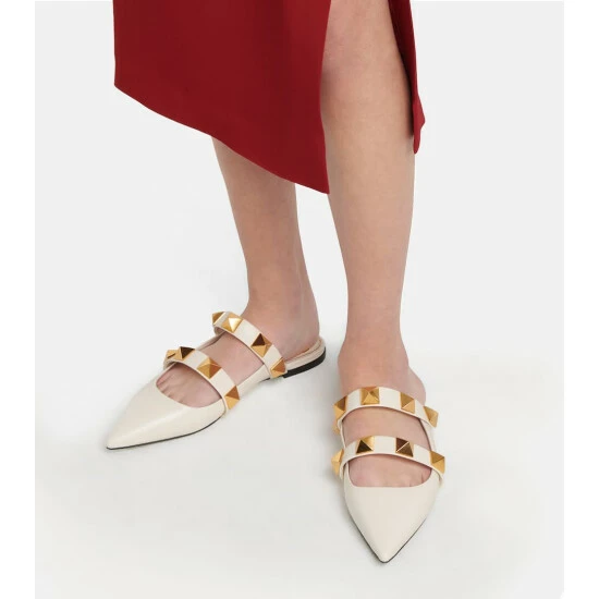 Fans of Valentino Garavani’s iconic hardware will adore the new Roman Studs that decorate these slippers. Made in Italy from smooth calf leather in an ivory hue, these mule-inspired flats have pointed toes, padded insoles, and slender heels.