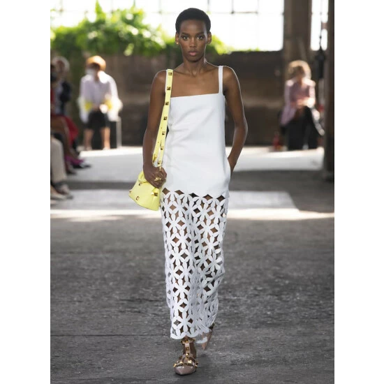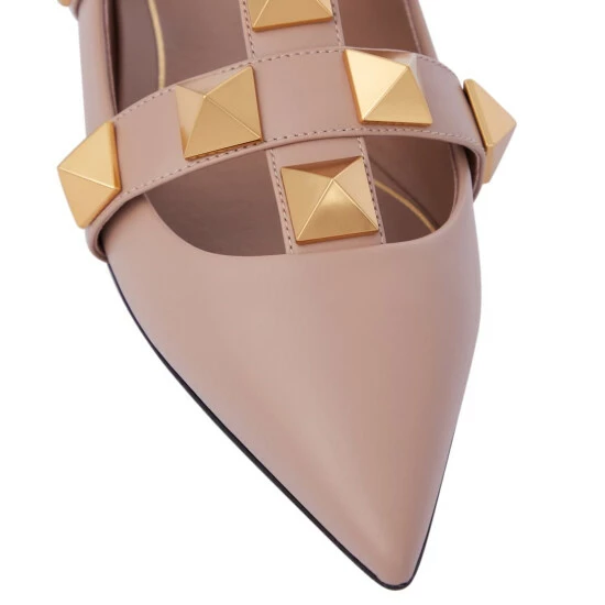 The Roman Stud slippers from Valentino Garavani imbue elegance from the ground up. Debuted on the SS21 runway in elegant ”Rose Cannelle’ beige, they’re studded with a magnified iteration of the house’s pyramidal hardware along signature caged arches, and fasten with wide buckled ankle straps. Let yours anchor flowing white dresses.