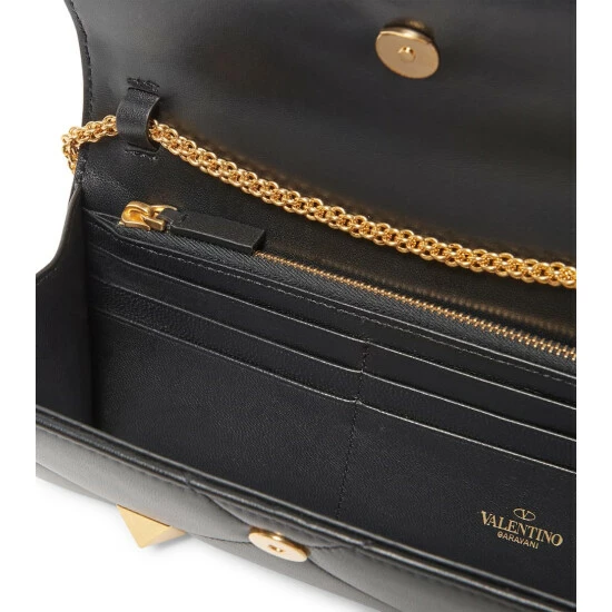 Valentino Garavani proves there’s no compromise on style necessary with grab-and-go accessories like the Roman Stud wallet on chain. Made in Italy made from black nappa leather, it’s finished with iconic, gold-toned Roman Stud details.