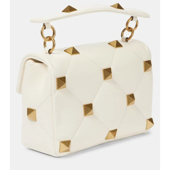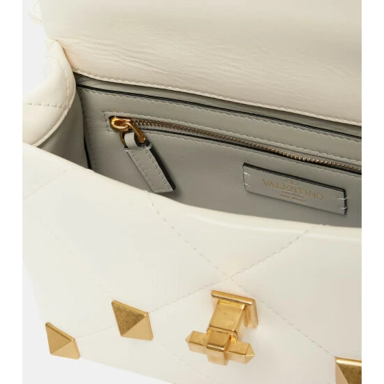 Valentino Garavani embraces a classic color palette with this ivory Roman Stud Medium shoulder bag. The lines of the pyramid studs are mirrored by diamond-quilted nappa leather. Make yours a glamorous plus-one for evenings out.