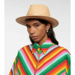 This straw fedora from Valentino Garavani is a smart-casual vacation accessory. It has a flat brim and a leather-trimmed crown enriched with magnified Roman Stud hardware.