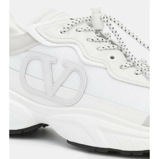 Elevate your essentials edit with these timeless white SHEGOES sneakers from Valentino Garavani, embroidered with iconic leather VLOGOs. Made from a technical mesh upper, they feature dotted drawstring laces and a rubber outsole to ensure comfort in every step.