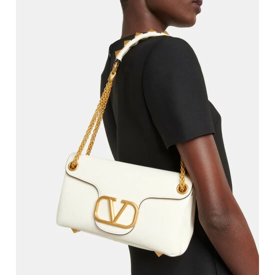 Valentino Garavani’s Stud Sign shoulder bag is destined to be your new after-dark companion. It’s made from butter-soft white nappa leather with signature platinum-plated pyramidal hardware – cleverly mirrored at the feet – and topped off with a Vlogo monogram.