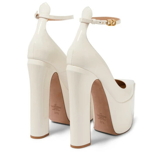 Dare to turn heads in Valentino Garavani’s Tan-Go patent leather pumps. Made in Italy, they’re set atop towering 155mm platform heels, and feature signature VLogo buckles.