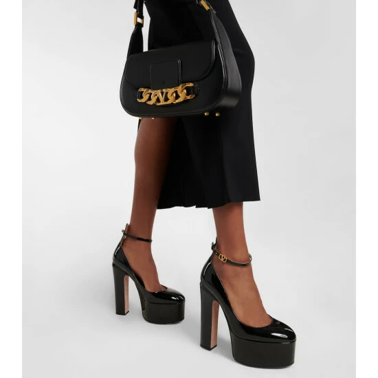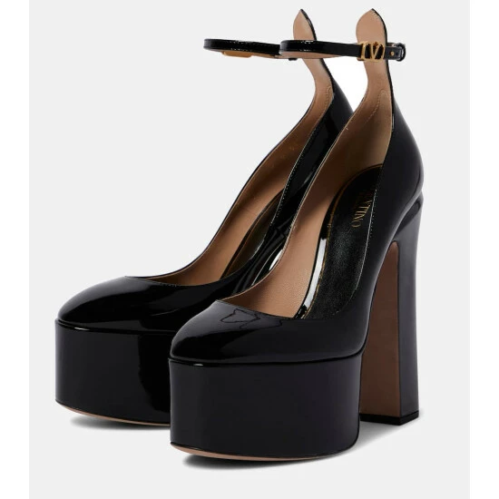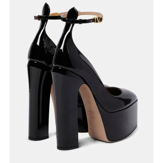 Dare to turn heads in Valentino Garavani’s Tan-Go patent leather pumps. Made in Italy, they’re set atop towering 155mm platform heels, and feature signature VLogo buckles.