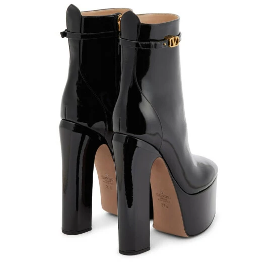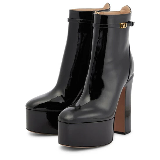 Stand out from the crowd in the Tan-Go platform ankle boots from Valentino Garavani. Crafted from patent calfskin leather, the platform style has an adjustable ankle strap with iconic VLogo buckles.