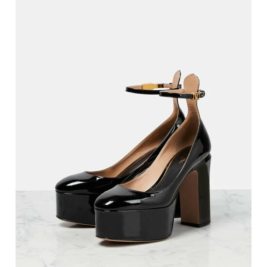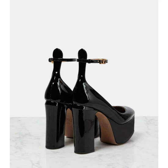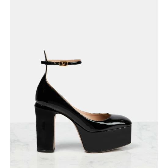 Take center stage wearing Valentino Garavani’s striking Tan-Go pumps. Made from patent leather, they rest on staggering platforms and block heels, and fasten with dainty VLogo buckled ankle straps.