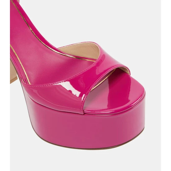Dare to turn heads in Valentino Garavani’s pink Tan-Go patent leather sandals. Made in Italy, they’re set atop towering 120mm platform heels, and feature signature VLogo buckles.