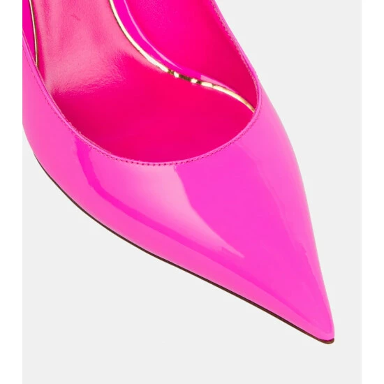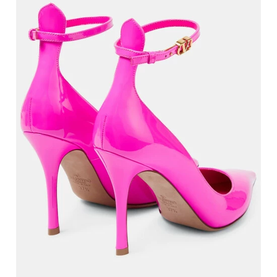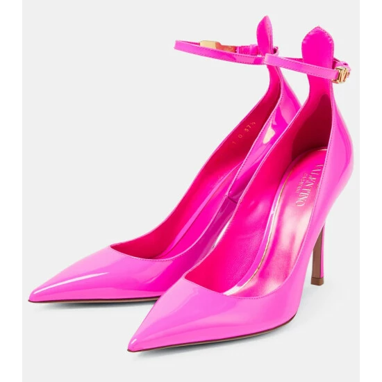 Step into the Tan-Go pumps from Valentino Garavani for effortless glamour. Made from patent leather in the brand’s emblematic Pink PP shade, the pointed-toe style has an adjustable ankle strap with a gold-toned VLogo buckle and high stiletto heels.