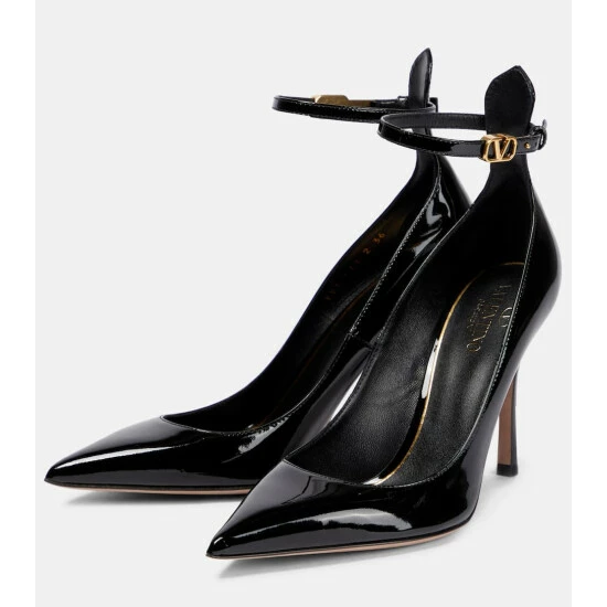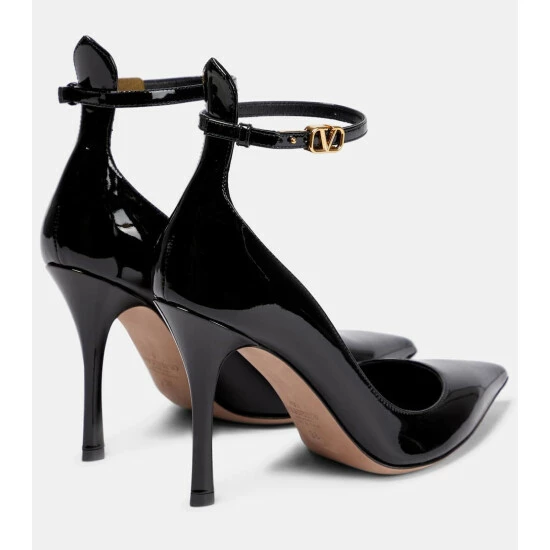 Step into the Tan-Go pumps from Valentino Garavani for effortless glamour. Made from glossy black patent leather, the pointed-toe style has an adjustable strap with a gold-toned VLogo buckle.