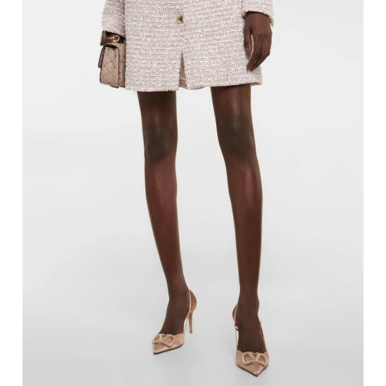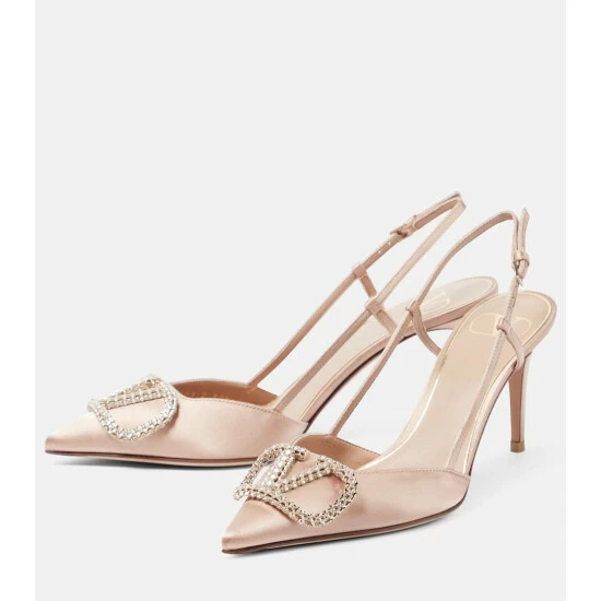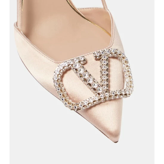 Valentino Garavani’s VLogo slingback pumps will add easy elegance to any ensemble. Made in Italy from shiny pink satin, they feature 80mm stiletto heels and are topped with Swarovski crystal-encrusted emblems.