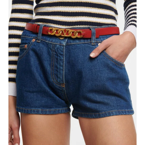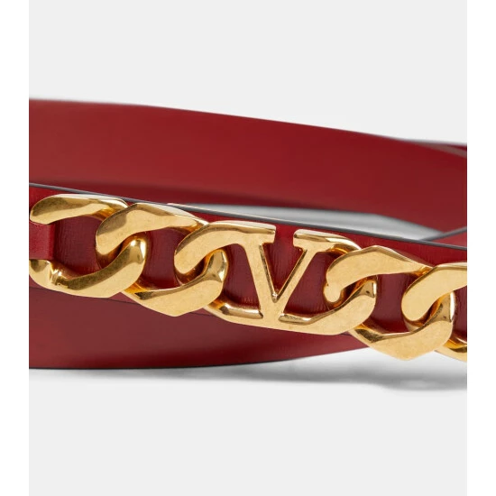 This belt from Valentino Garavani is embellished with glamorous golden VLogo Chain hardware. It’s made in Italy from smooth red calf leather and fastens via a push-stud.