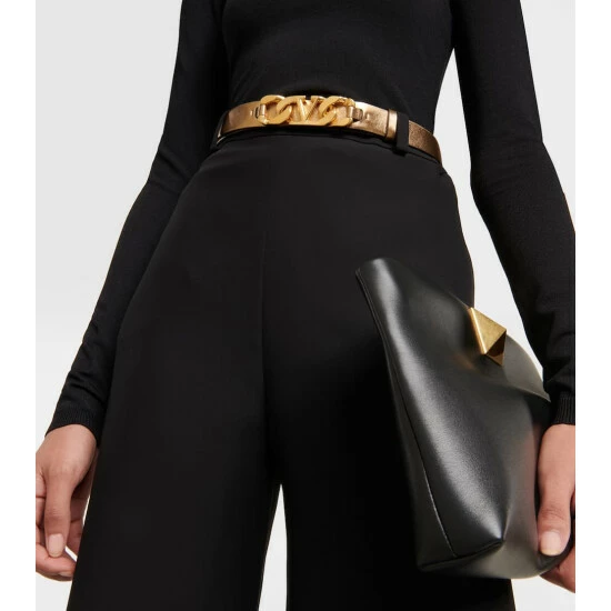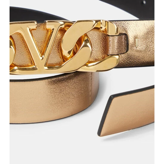 This belt from Valentino Garavani is embellished with glamorous golden VLogo Chain hardware. It’s made in Italy from metallic leather and fastens via a push-stud.