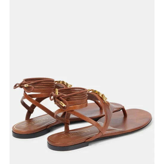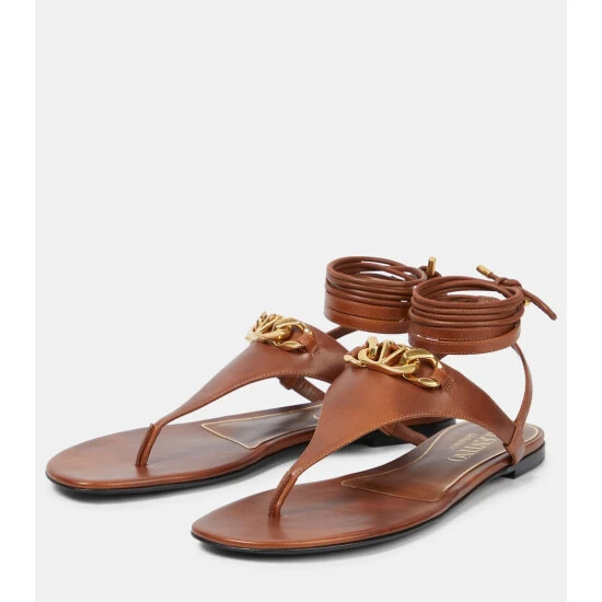 Thong sandals are the shoe of the season, with styles like the VLogo Chain pair from Valentino Garavani. They’re made from polished leather with monogram embellishments and winding ankle straps for a secure fit.