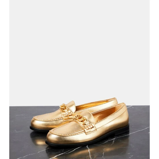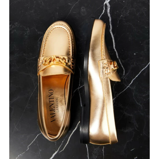 The classic penny loafer receives a luxurious update in the form of this Valentino Garavani design. Made from metallic nappa leather, they showcase the iconic gold-toned VLogo Chain.