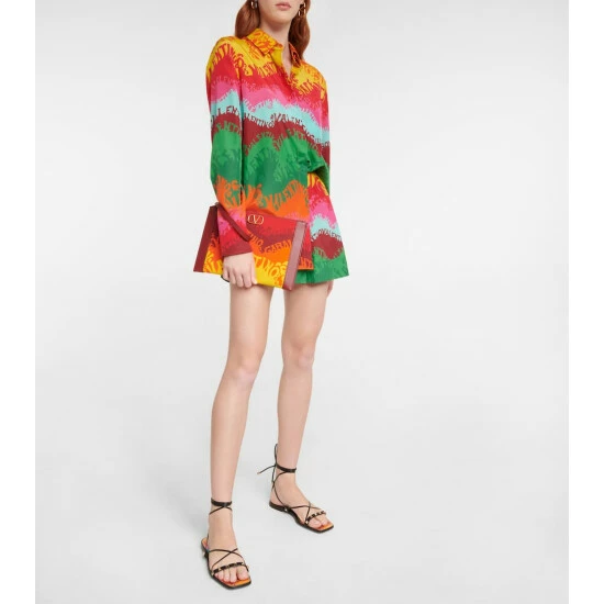 Make your summer style companion this VLogo Large pouch from Valentino Garavani x Mytheresa. Made from canvas with leather trim, it features an exclusive Valentino Waves multicolored print and house-signature hardware.