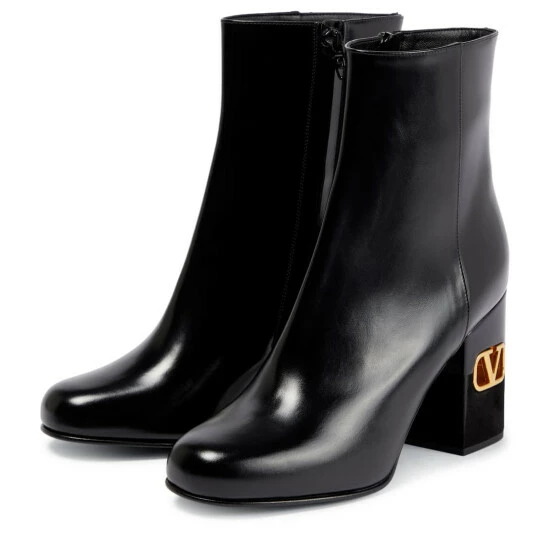 The polished finish of these Valentino Garavani ankle boots will ensure they shine in any weather. Made from calf leather, the sleek design is finished with golden VLogo detailing on the block heels.