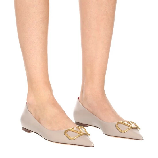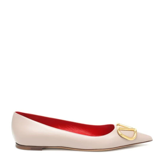 Be the envy of the fashion set in Valentino Garavani’s leather ballet flats. Presented in the house’s signature “poudre” pink, they’re adorned with oversized golden VLOGO plaques on their pointed toes.