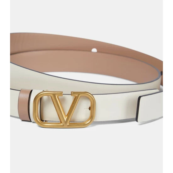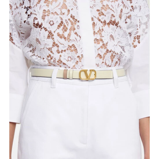 Shake up your accessories edit with this white VLogo belt from Valentino Garavani. Made from smooth calfskin leather, the slim-profiled design is sealed with an antique golden monogram.