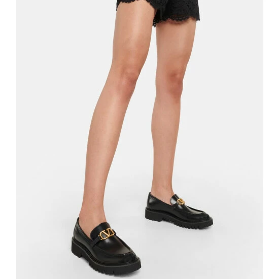 The classic penny loafer receives a luxurious update in the form of this Valentino Garavani design. Made from smooth leather, they feature practical, lugged rubber soles and iconic, gold-toned VLogo hardware.