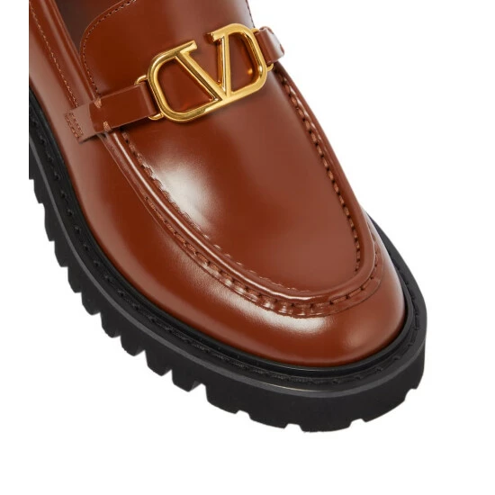 The classic loafer receives a luxurious update in the form of this Valentino Garavani design. Made from smooth brown leather, they feature practical, lugged rubber soles and iconic, gold-toned VLogo hardware.