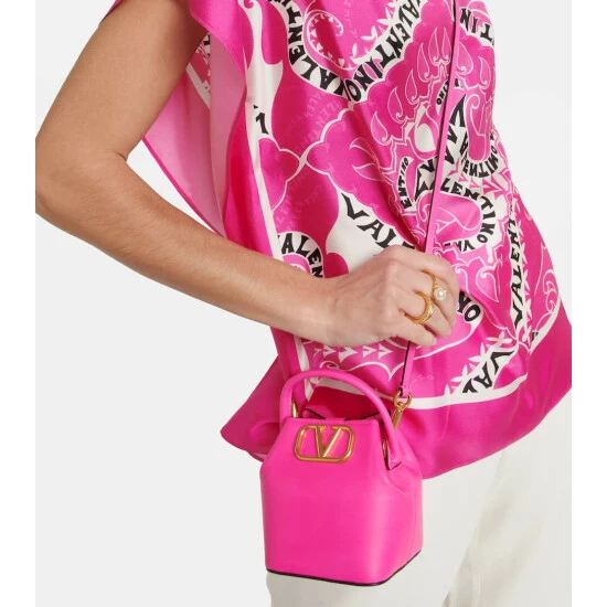 Elevate your accessories edit with this chic and compact shoulder bag from Valentino Garavani. Made from pink-grained leather, the style is defined by its gold-tone VLogo and has a top handle and detachable shoulder strap.