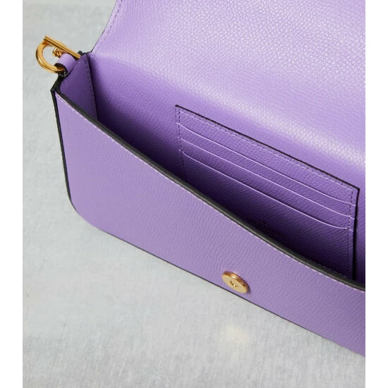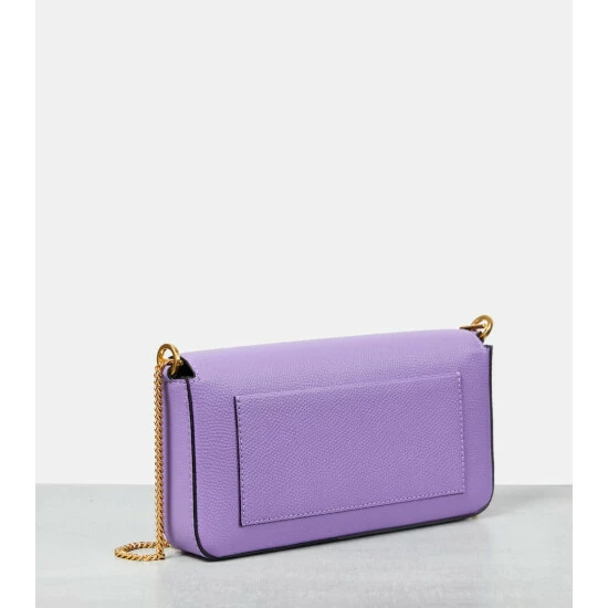 Elevate your accessories edit with this chic and compact shoulder bag from Valentino Garavani. Made from purple grained leather, the style has a gold-tone VLogo on the flap and a detachable chain shoulder strap.