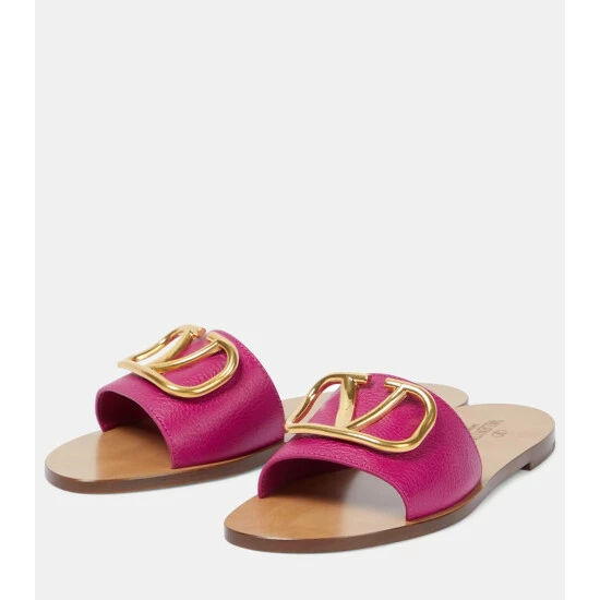 Slip into the VLogo slides from Valentino Garavani for a touch of high-summer glamour. Made from grained pink leather, they’re adorned with oversize VLogo plaques in gold.