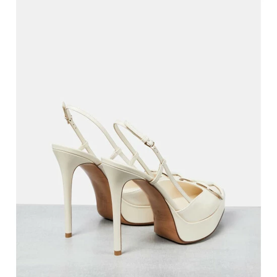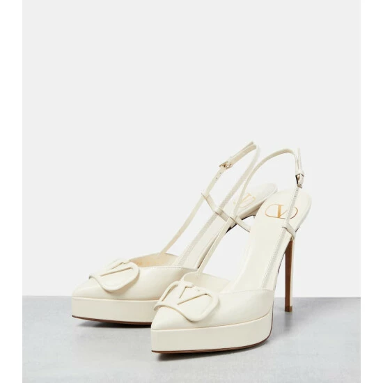 These slingback platform pumps from Valentino Garavani are primed for elegant styling. Made from ivory-white leather, the pointed-toe style features the label’s iconic VLogo detailing and are set on stiletto heels.