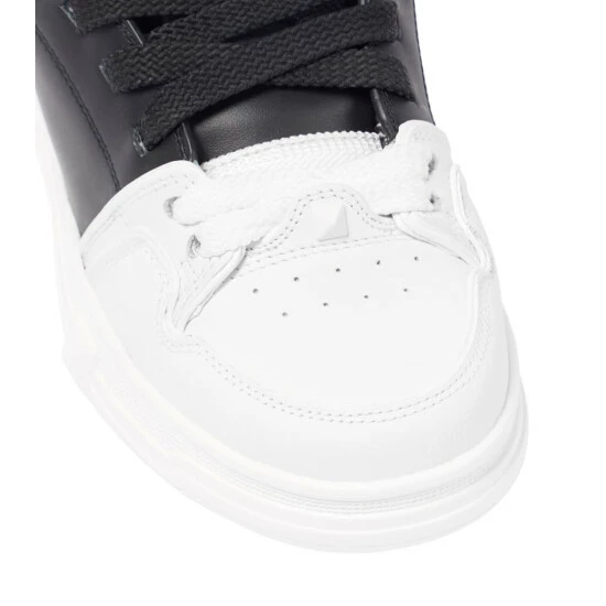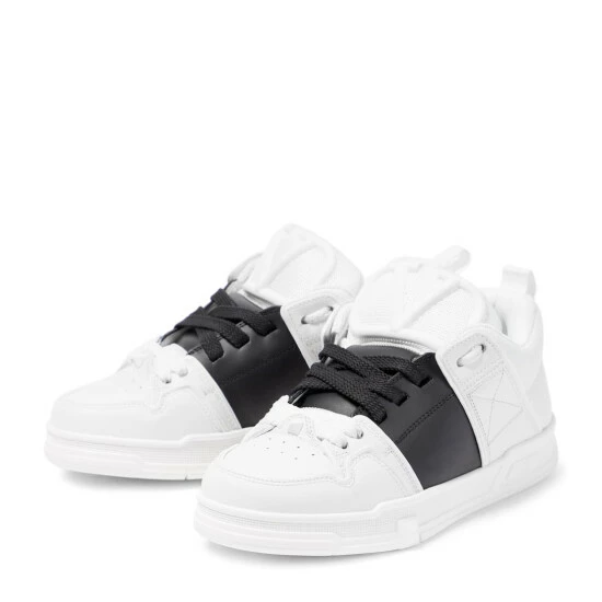 Bring a stylish edge to your streetwear edit with these sneakers from Valentino Garavani. Made from smooth leather, they’re decorated with hidden brand-signature pyramidal details, contrast stripes, and VLogo embossing at the tongues.