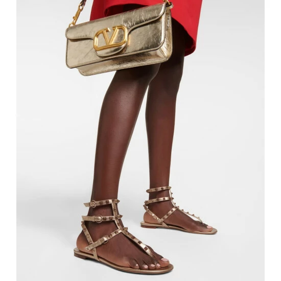 These thong sandals from Valentino Garavani prove that flats can be glamorous, too. Made from leather with a tactile full grain, they feature brass VLogo embellishments and rest on low stacked heels.