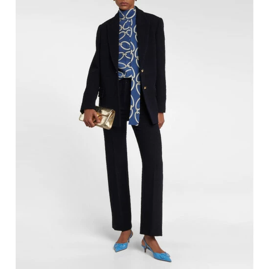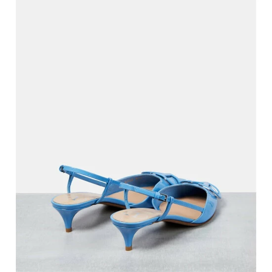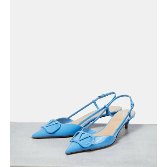 These Valentino Garavani VLogo pumps will never go amiss. Embellished with the brand’s monogram in tonal hardware, this blue patent leather pair features pointed toe profiles and kitten heels for easy elegance.