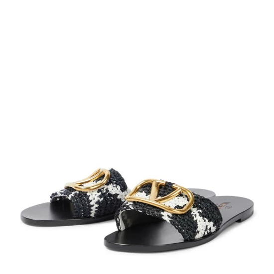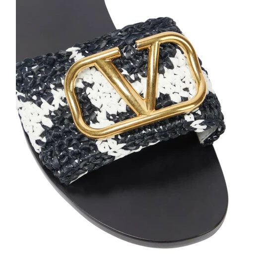 Elevate your summer footwear edit with these slides from Valentino Garavani x Mytheresa. Made from raffia-effect with a Giraffa Re-Edition pattern and a leather sole, this pair is finished with house-signature VLogo hardware. Wear yours with the matching tote and minidress.