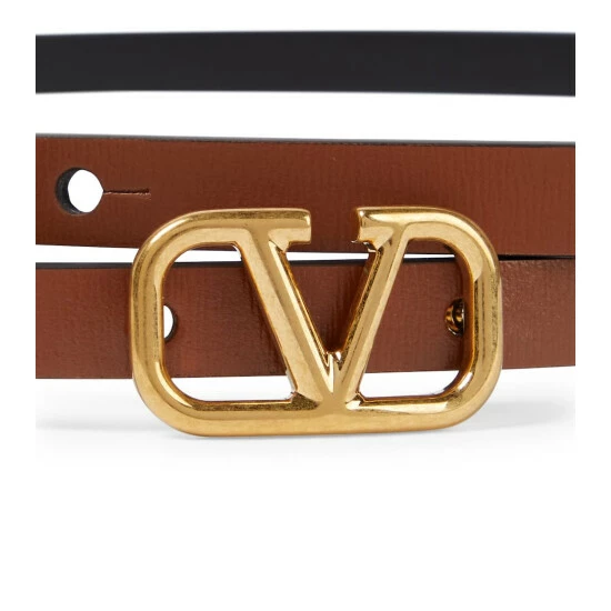Accessorize with this VLogo leather belt from Valentino Garavani to add subtle glamour to your looks. The slim black and brown design can be worn both ways and is finished with iconic golden hardware.