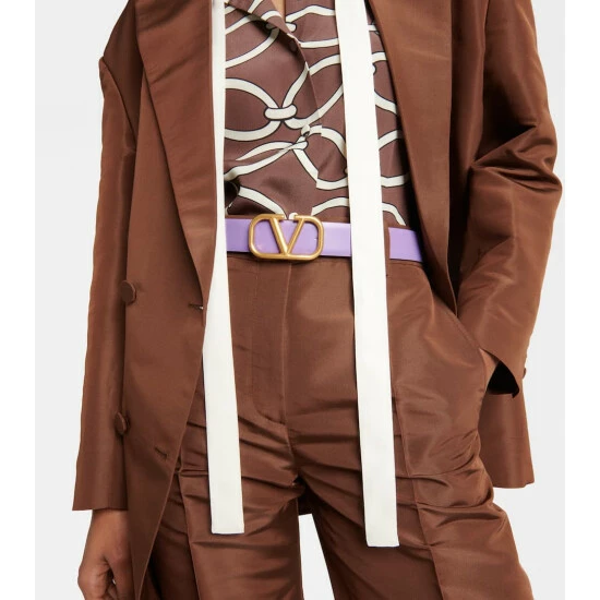 Add a glamorous touch to your ensembles with Valentino Garavani’s VLogo Signature belt. Made from smooth calf leather, it reverses from purple to pink and is accented with a golden VLogo buckle.