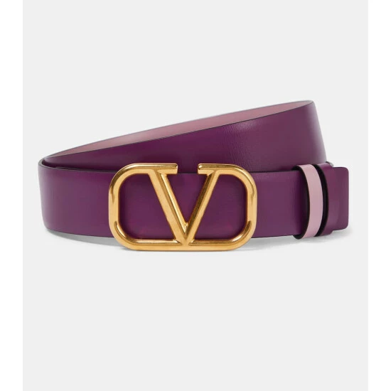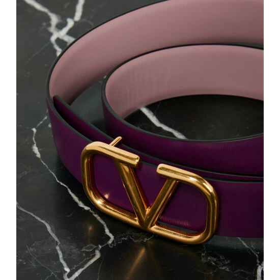 Add a glamorous touch to your ensembles with this belt from Valentino Garavani. Made from smooth calf leather, it reverses from pink to purple and is accented with a golden VLogo buckle.