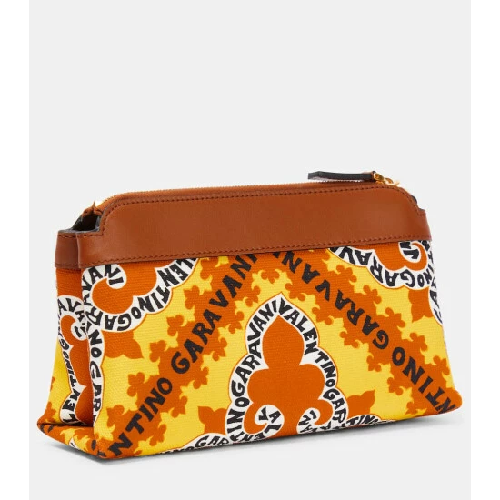 Valentino Garavani’s VLogo Signature canvas pouch features a bold, orange-and-red print. Made from canvas with leather trim, it has three card slots inside and features a gold-toned logo.