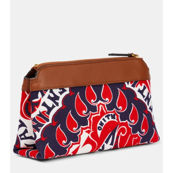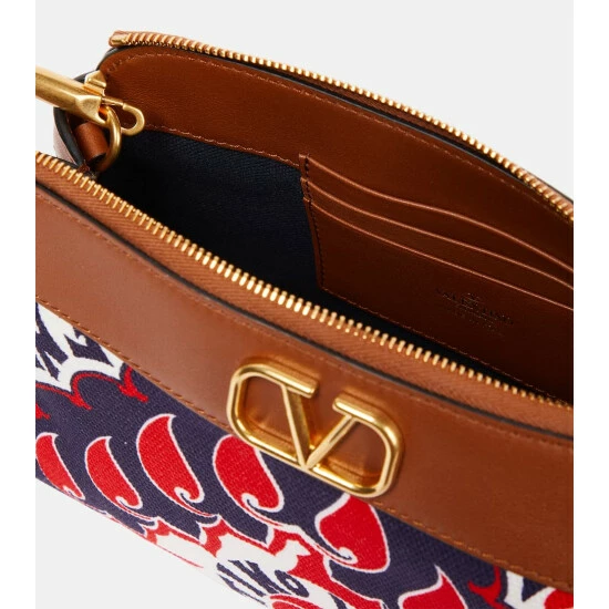 Valentino Garavani’s VLogo Signature canvas pouch features a bold, blue-and-red archive print. Made from canvas with leather trim, it has three card slots inside and features a gold-toned logo.