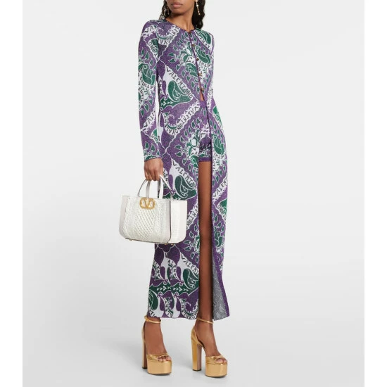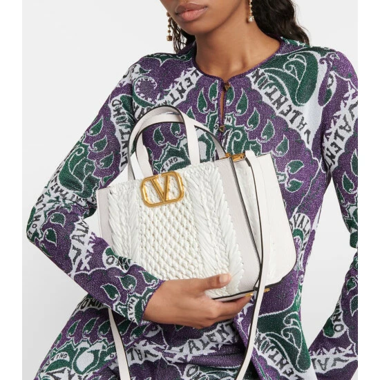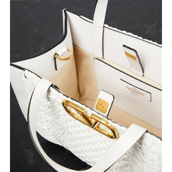 Made from a raffia-effect crochet knit, this tote bag from Valentino Garavani is detailed with the label’s coveted VLogo and hangs from a detachable shoulder strap.