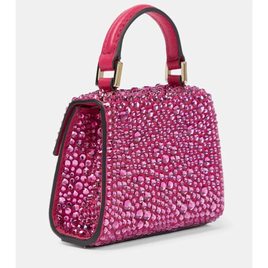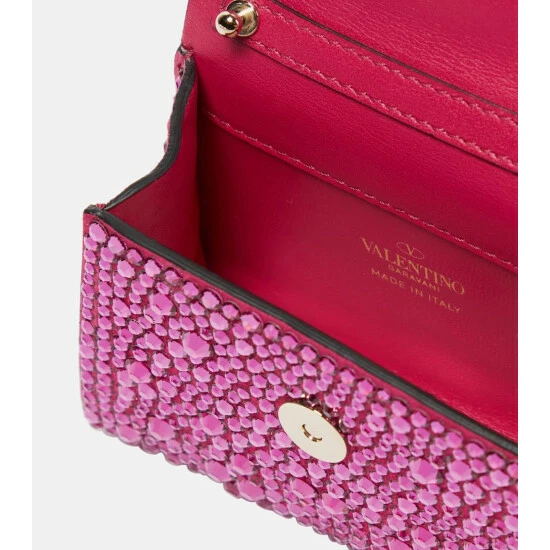 A compact design with high impact, the VSling Micro crossbody bag from Valentino Garavani is embellished entirely with Swarovski® crystals. Made from lambskin leather, the petite design has a tonal VLogo on the flap and platinum-finished metal accents.
